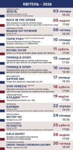 Репертуар на квітень